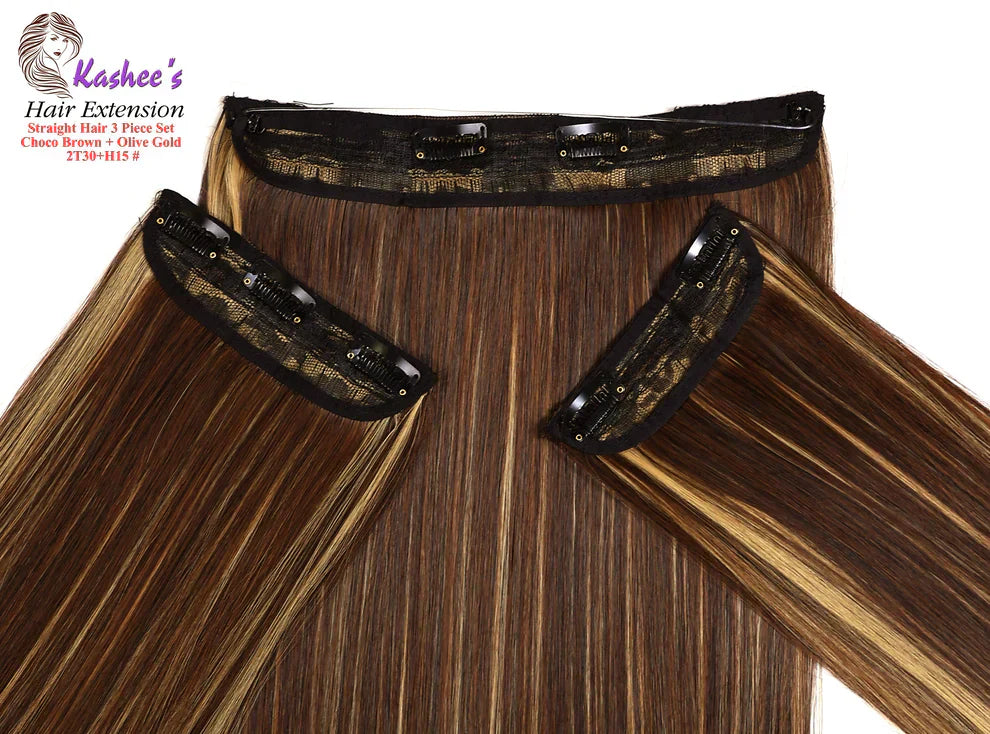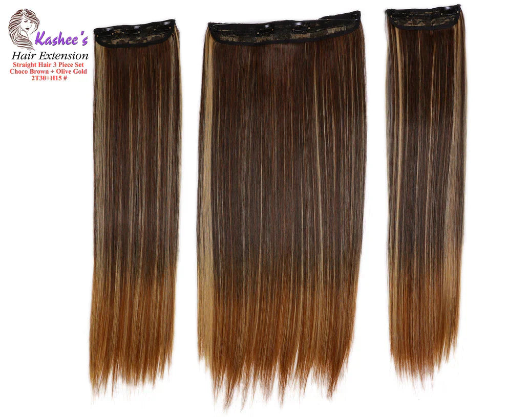 Synthetic Straight Choco Brown + Olive Gold Hair Extension 24-26 INCH